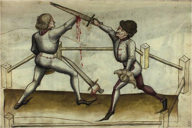 Bis zum 14 Jahrhundert wurde vor allem mit einhändigen zu führenden Schwert und zusätzlichem Schild gefochten - dem "Einhänder".